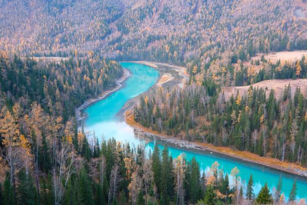 Hồ Kanas là thắng cảnh bậc nhất Trung Quốc, theo tiếng Mông Cổ tên hồ có nghĩa là "đẹp và bí ẩn". Được hình thành từ cách đây 200.000 năm và nằm ở độ cao 1.375m giáp với Kazakhstan, Mông Cổ và Nga, Kanas là một điểm đến bí ẩn như tên gọi. Vẻ đẹp mê hoặc với màu nước xanh trong như ngọc, những hàng cây soi bóng và khung cảnh bình yên càng trở nên cuốn hút hơn khi vào thu.