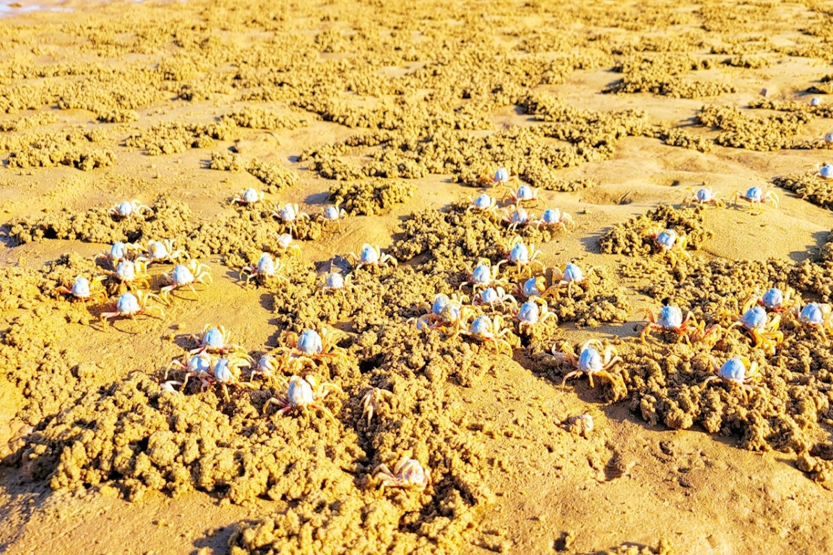 Nếu khéo léo và may mắn, du khách có thể bắt được một vài loại thủy sản như ốc, cá… hoặc đơn giản là ngắm nhìn đàn dã tràng lúc ẩn lúc hiện trên bãi cát.