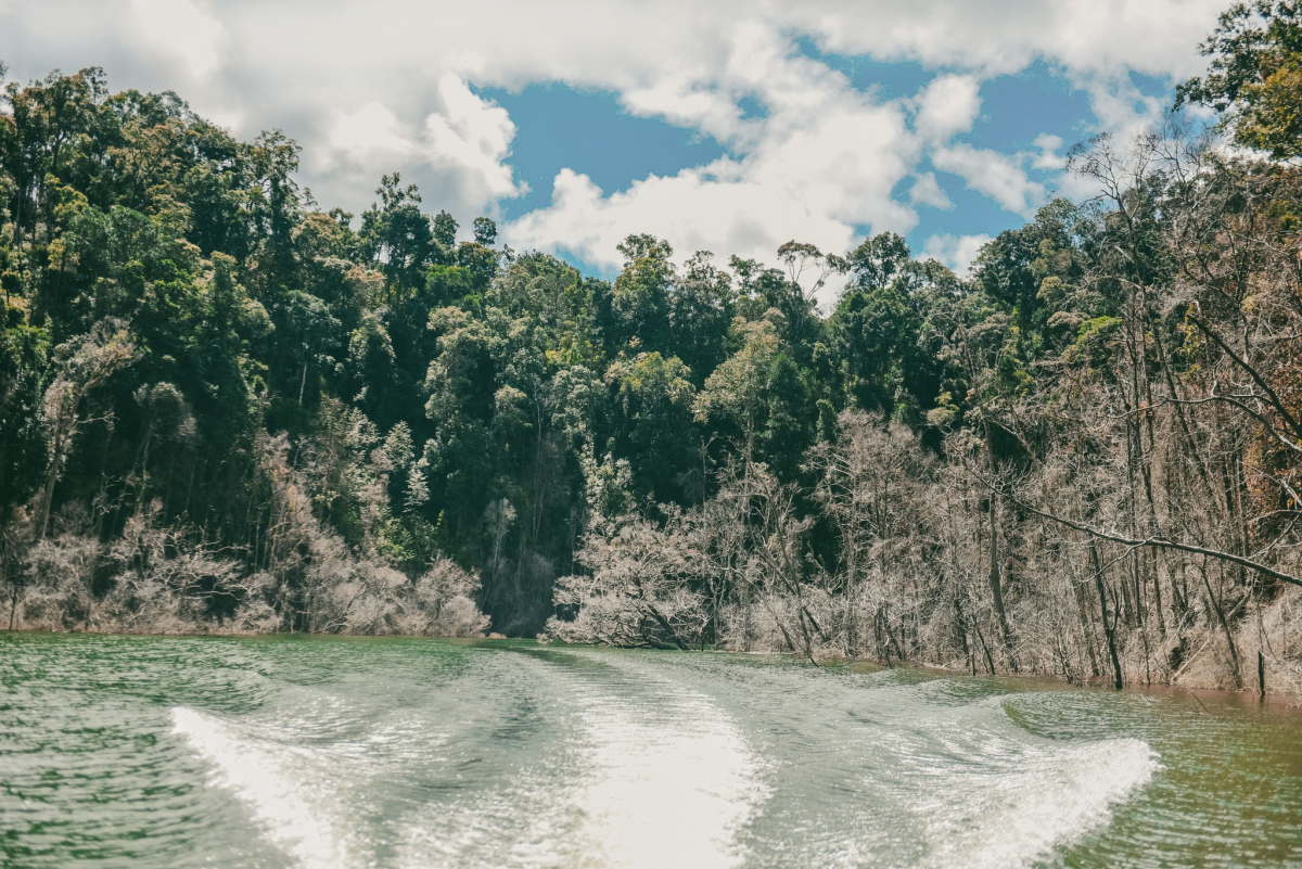 "Ngồi trên ca nô, ngắm nhìn bọt nước tung lên trắng xóa kết hợp với ánh sáng mặt trời tạo ra cầu vồng nhỏ hai bên mạn tàu, đi tới đâu cầu vồng theo tới đó, cảm giác như bước vào một vùng đất thần tiên", Sang cảm nhận.