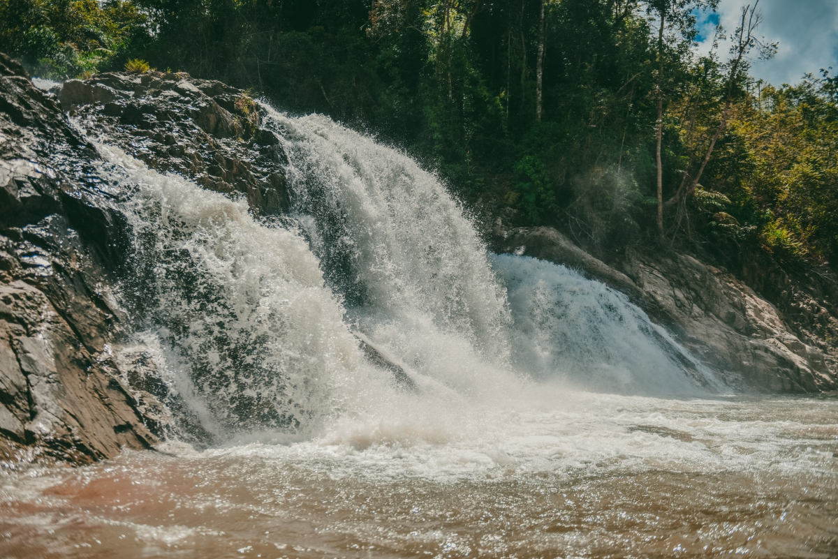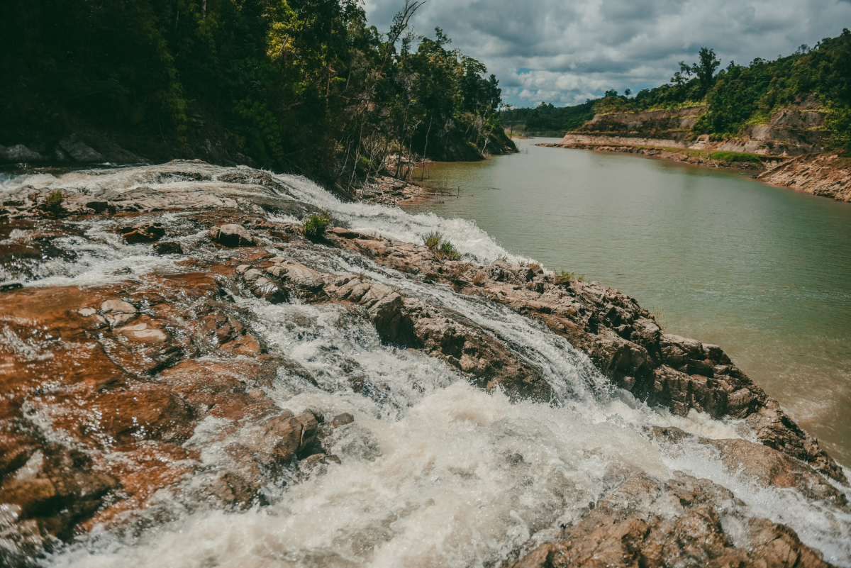 Sau khi vượt khoảng 15 km lòng hồ, con thác Rô Sia (Thác thuỷ điện) dần lộ diện, tung bọt trắng nơi thượng nguồn.