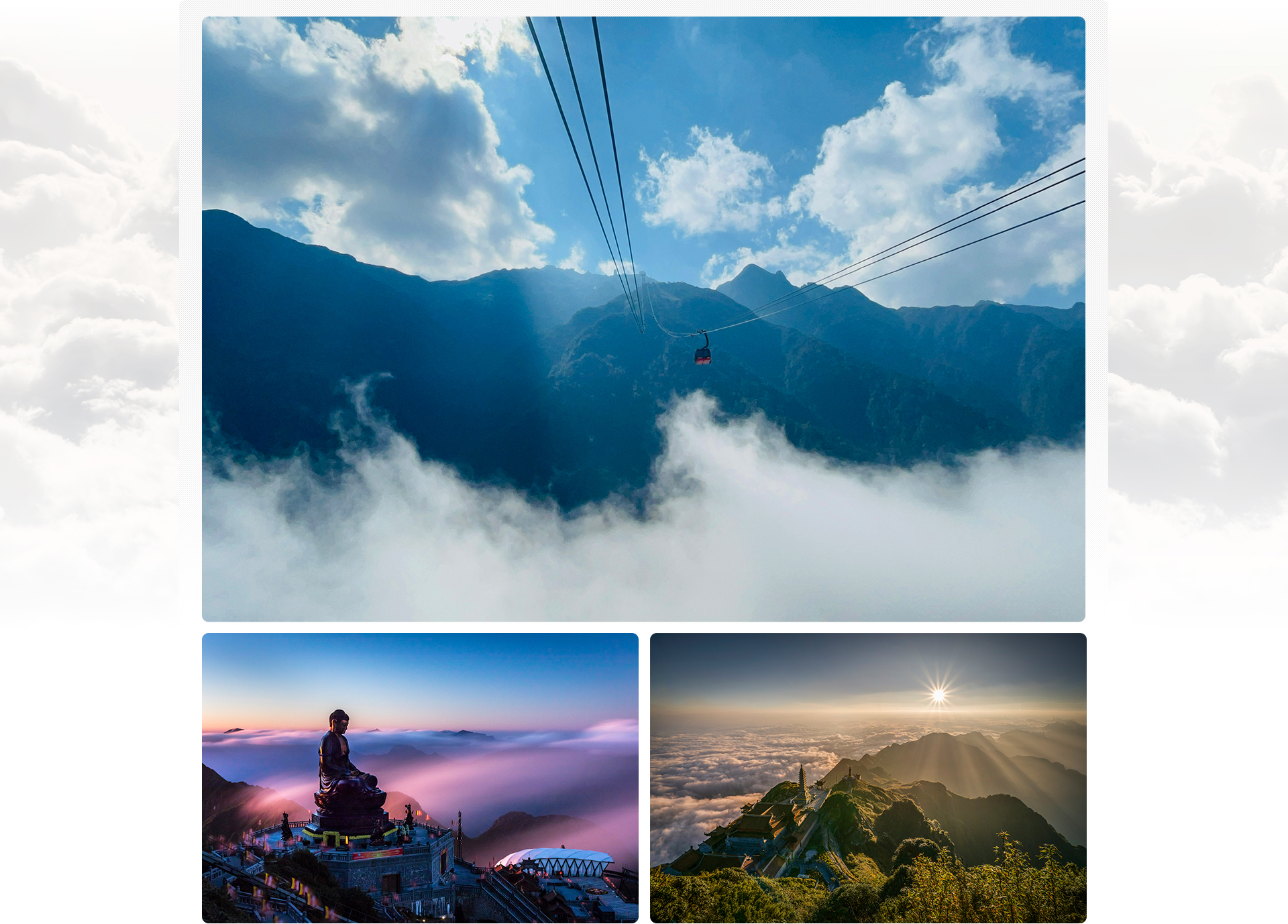 Khi cánh cửa cabin cáp treo mở ra, du khách có thể thấy đất trời hòa làm một, biển mây cuồn cuộn chảy dưới ánh nắng mặt trời rực rỡ. Trên nền nhiệt ở mức dưới 20 độ C trong mùa hè, có khi xuống dưới 15 độ C, Fasipan được sương giăng mây phủ, ẩn hiện những công trình tâm linh mang dáng dấp chùa Việt cổ thế kỷ 15-16. Tiếng chuông ngân trong lảng bảng mây mờ mang cảm giác yên bình, thanh tịnh cho du khách.