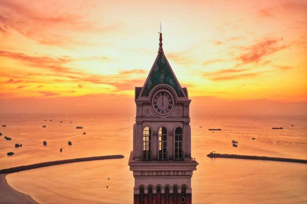 Tâm điểm của “thị trấn Địa Trung Hải” là khu Central Village với tháp đồng hồ cao 75 m, sở hữu kiến trúc mô phỏng nguyên bản tháp chuông nổi tiếng trên quảng trường San Marco (Venice, Italy). Tháp đồng hồ được đặt giữa những khối nhà phân cấp đủ màu sắc với ô cửa sổ thơ mộng hướng ra mặt biển lấp lánh cùng cung đường dạo ôm theo vách đá.