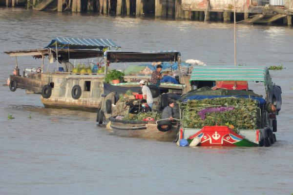 Một xuồng hàng bông tìm ra chợ để mua hàng về bán, nhưng chợ trên sông lớn nhất miền Tây những ngày này cũng chẳng có nhiều hàng để mua - Ảnh: TIẾN TRÌNH