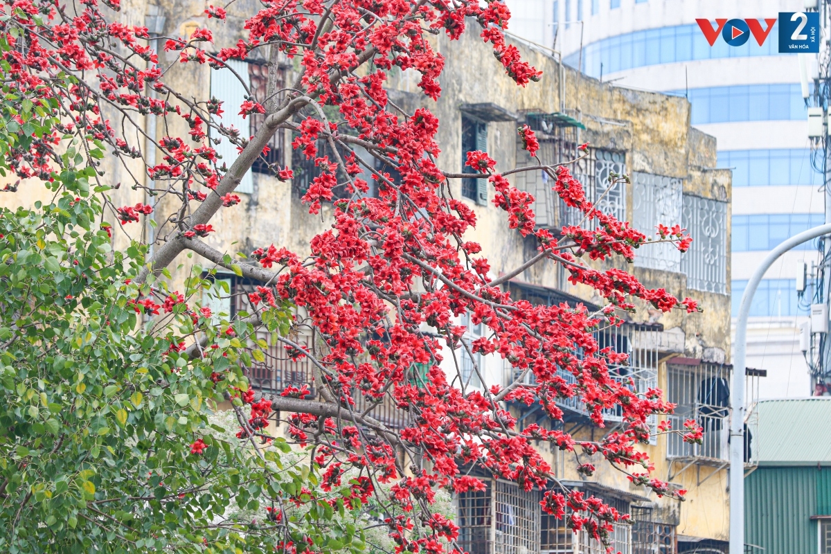 Mỗi độ tháng Ba về, khung cảnh thành thị ở Hà Nội như được khoác lên một tấm áo mới bởi sắc đỏ hoa gạo