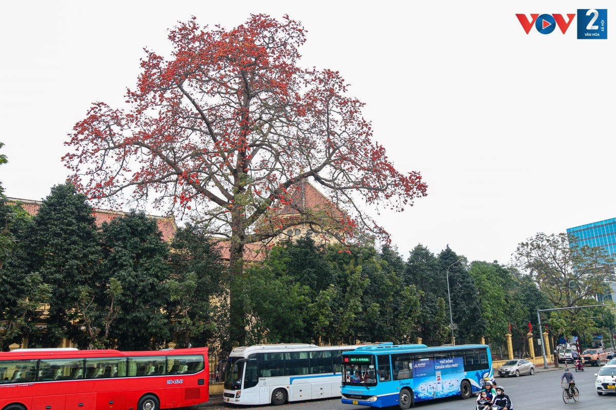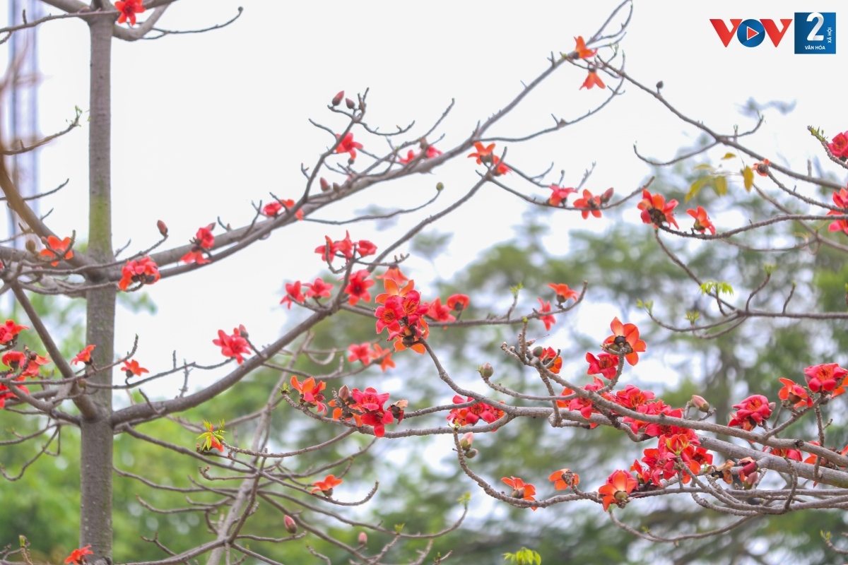 Hoa gạo thường gắn liền với khung cảnh những miền quê êm đềm. Thế nhưng giữa nội thành Hà Nội, người ta vẫn có thể bắt gặp những cây gạo như thắp lửa rực rỡ đất trời.