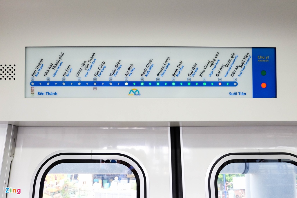 Hành trình từ ga Bến xe Suối Tiên đến ga An Phú đi qua 6 trạm dừng. Tại mỗi trạm, ban quản lý sẽ phát loa giới thiệu từng địa điểm đến du khách. Mọi người cũng có thể chủ động theo dõi hành trình di chuyển theo bảng báo hiệu trên tàu. Hiệu lệnh và biển báo tại ga và trên tàu đều sử dụng song ngữ là tiếng Anh và tiếng Việt.