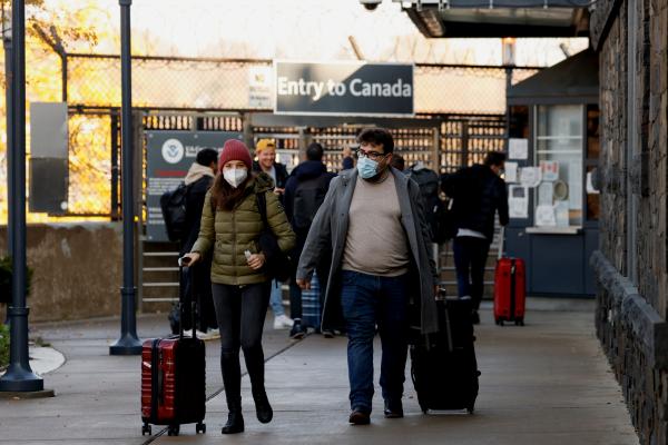 Du khách từ Canada tới Mỹ hôm 8/11, sau khi Mỹ mở cửa đón khách quốc tế. Nguồn: Reuters Tại khu vực biên giới Mỹ - Canada, việc mở cửa du lịch đã giải phóng "nhu cầu rất lớn bị dồn nén" của du khách sau gần 20 tháng hạn chế. Công ty bảo hiểm du lịch của bà Marty Firestone cho biết đã hoạt động kinh doanh tăng trưởng 25% vào tháng trước, so với cùng kỳ năm 2019.
