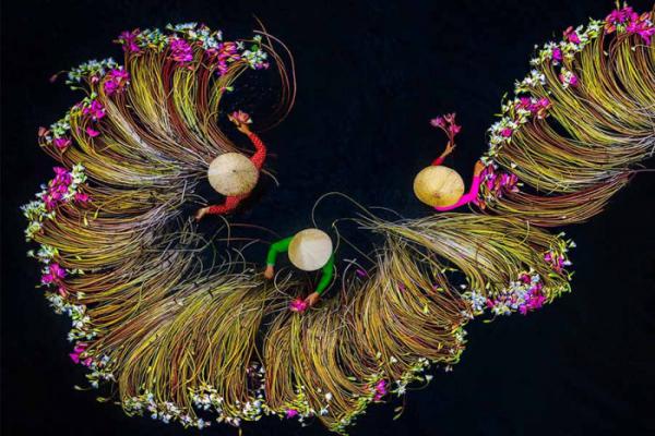 Nhiếp ảnh gia Phạm Trung Huy đã chụp lại cảnh tượng tuyệt đẹp này và đặt tên là “Lilies Harvest” khi đăng bộ ảnh về đồng bằng sông Cửu Long lên các trang báo nước ngoài.