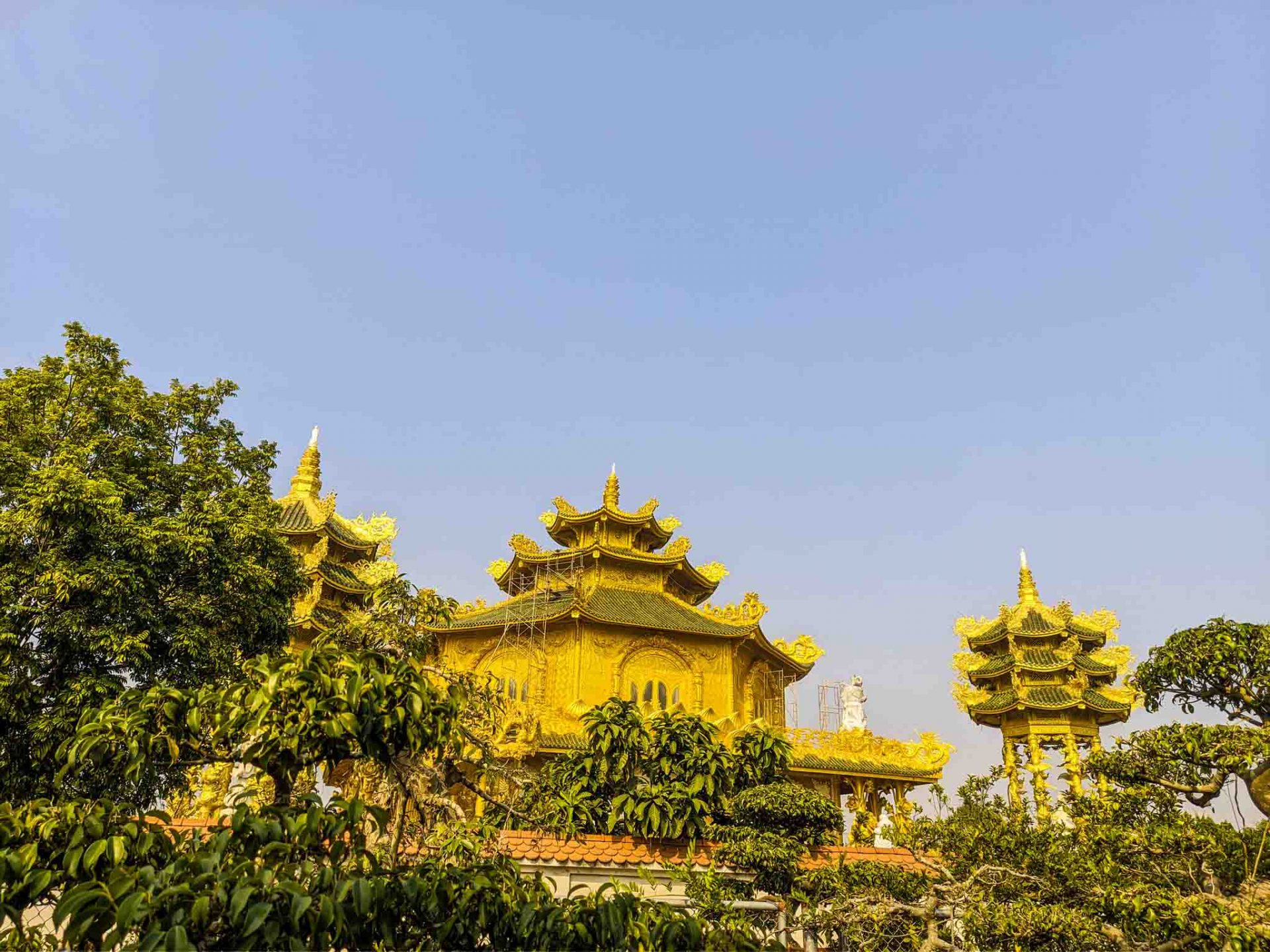 Chùa Phúc Lâm tọa lạc tại thôn La Mát, xã Phù Ủng, huyện Ân Thi, tỉnh Hưng Yên, cách TP Hà Nội khoảng 50km. Ngôi chùa này thu hút du khách với vẻ ngoài rực rỡ sắc vàng, nằm giữa phong cảnh làng quê yên bình, thanh tịnh.