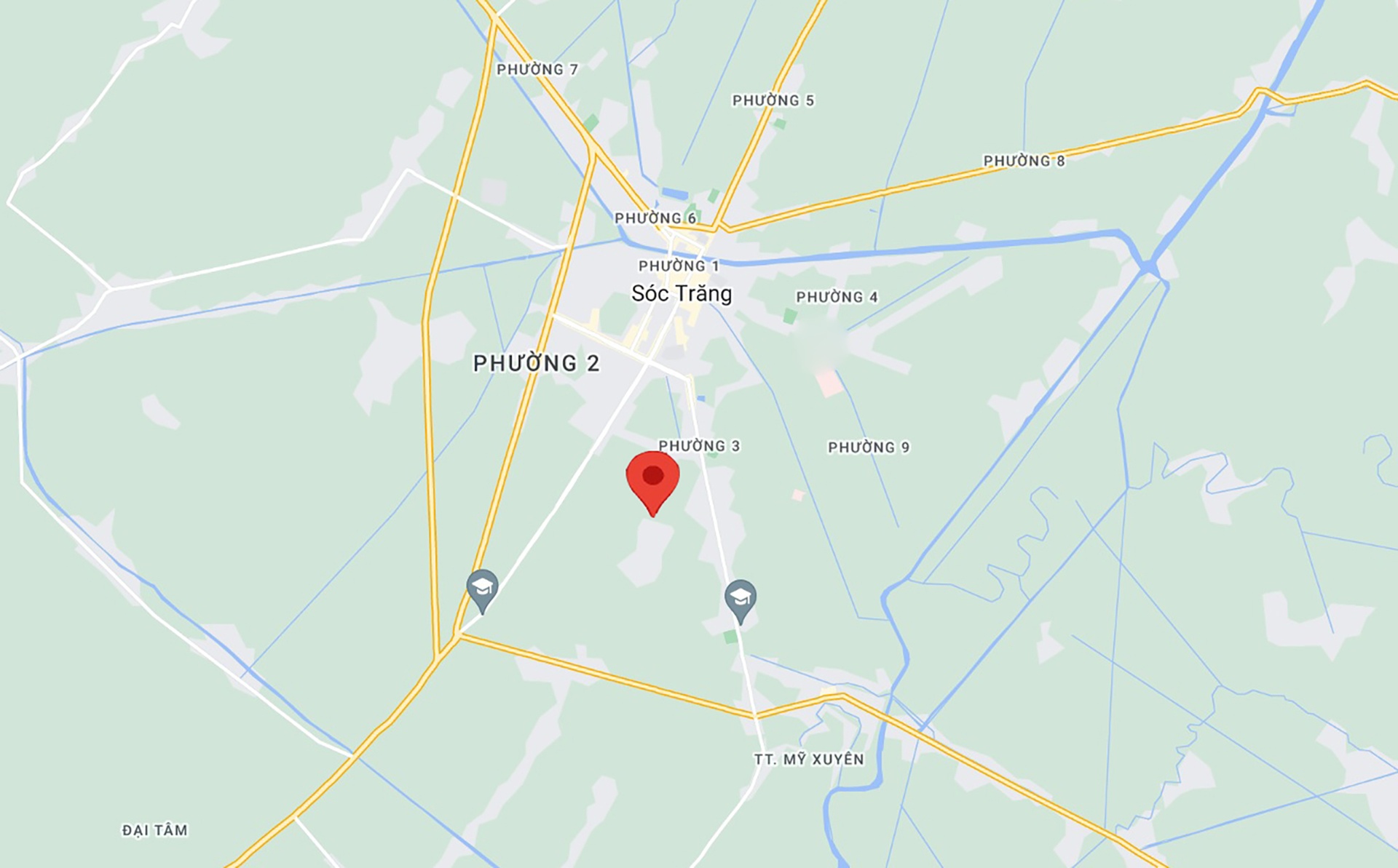 Vị trí chùa Dơi (chấm đỏ), tọa lạc tại phường 3, TP Sóc Trăng, tỉnh Sóc Trăng. Ảnh: Google Maps.
