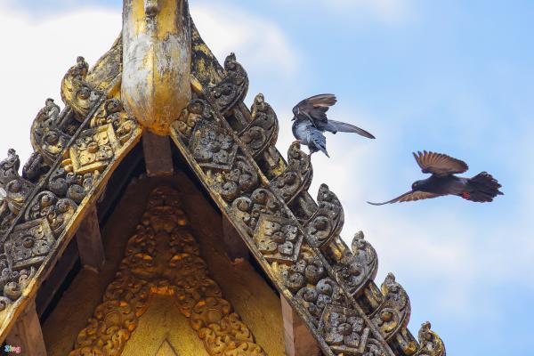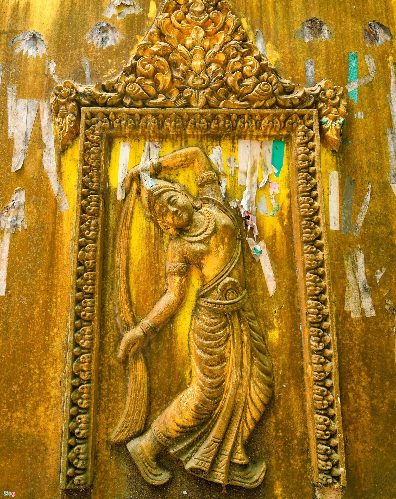 Thiên thần mang dáng dấp thiếu nữ Khmer được chạm khắc tinh xảo ở khu vực chính điện.