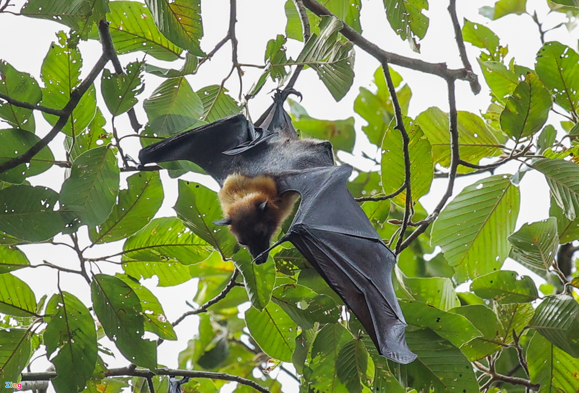 Cận cảnh một cá thể dơi có kích thước khá lớn. Dơi trú ngụ tại chùa thường có khối lượng trên dưới 0,5 kg/con, con trưởng thành có sải cánh dài gần một mét.
