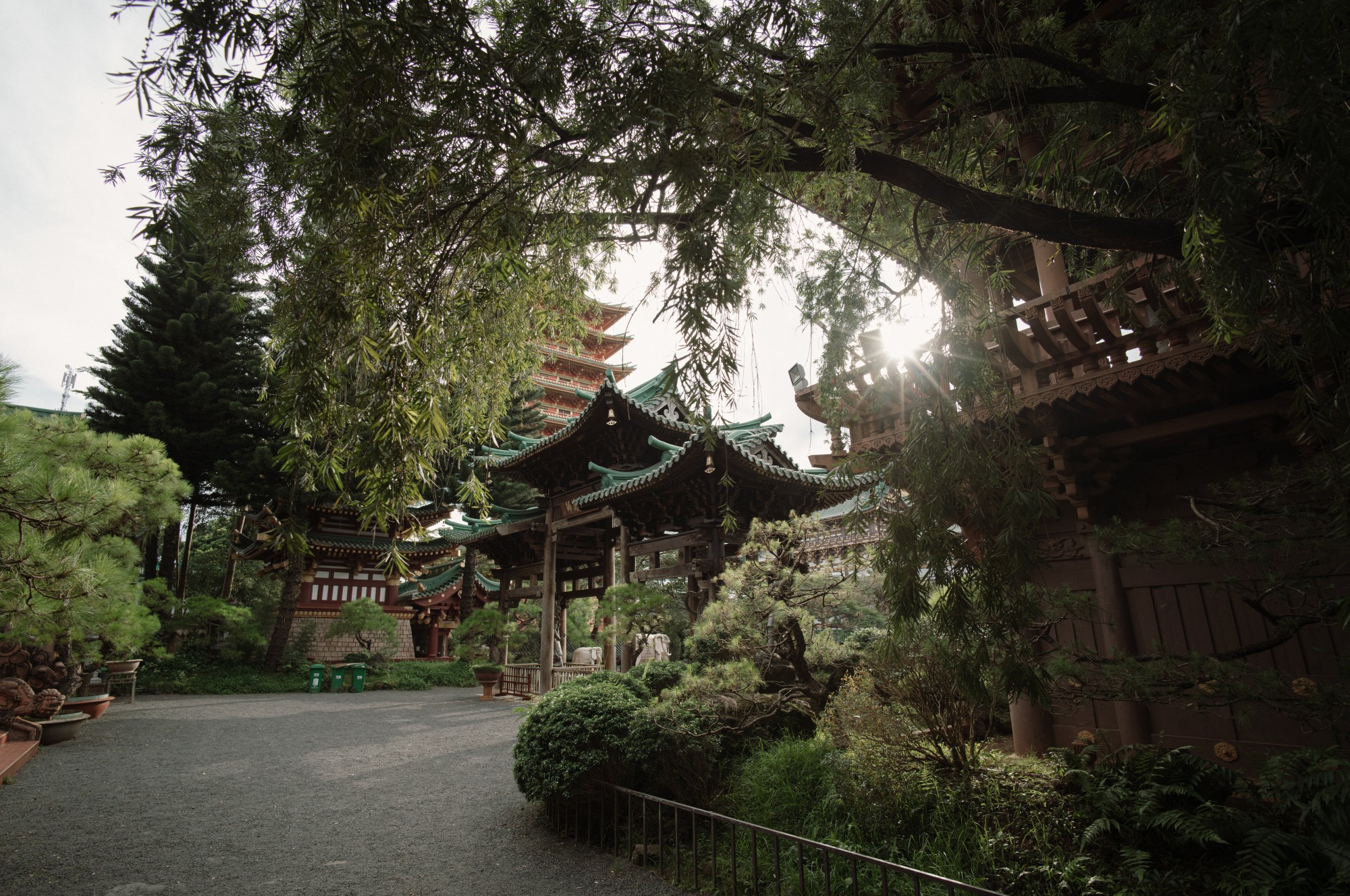 Sân chùa khá rộng và được trang trí bằng những tiểu cảnh, tượng đá, vật liệu gỗ được chạm khắc một cách rất tinh xảo. Ngoài ra, chùa còn có rất nhiều không gian xanh được các nhà sư thiết kế khá hợp lý bằng cây cối và tiểu cảnh khiến cho bầu không khí trở nên rất trong lành, thanh tịnh và dễ chịu..