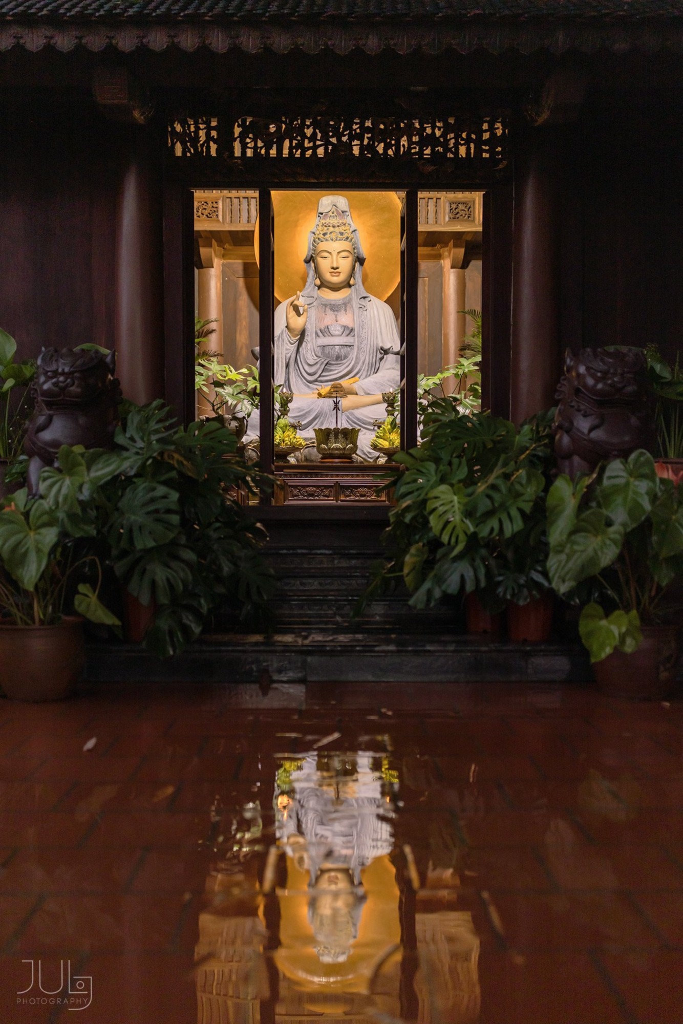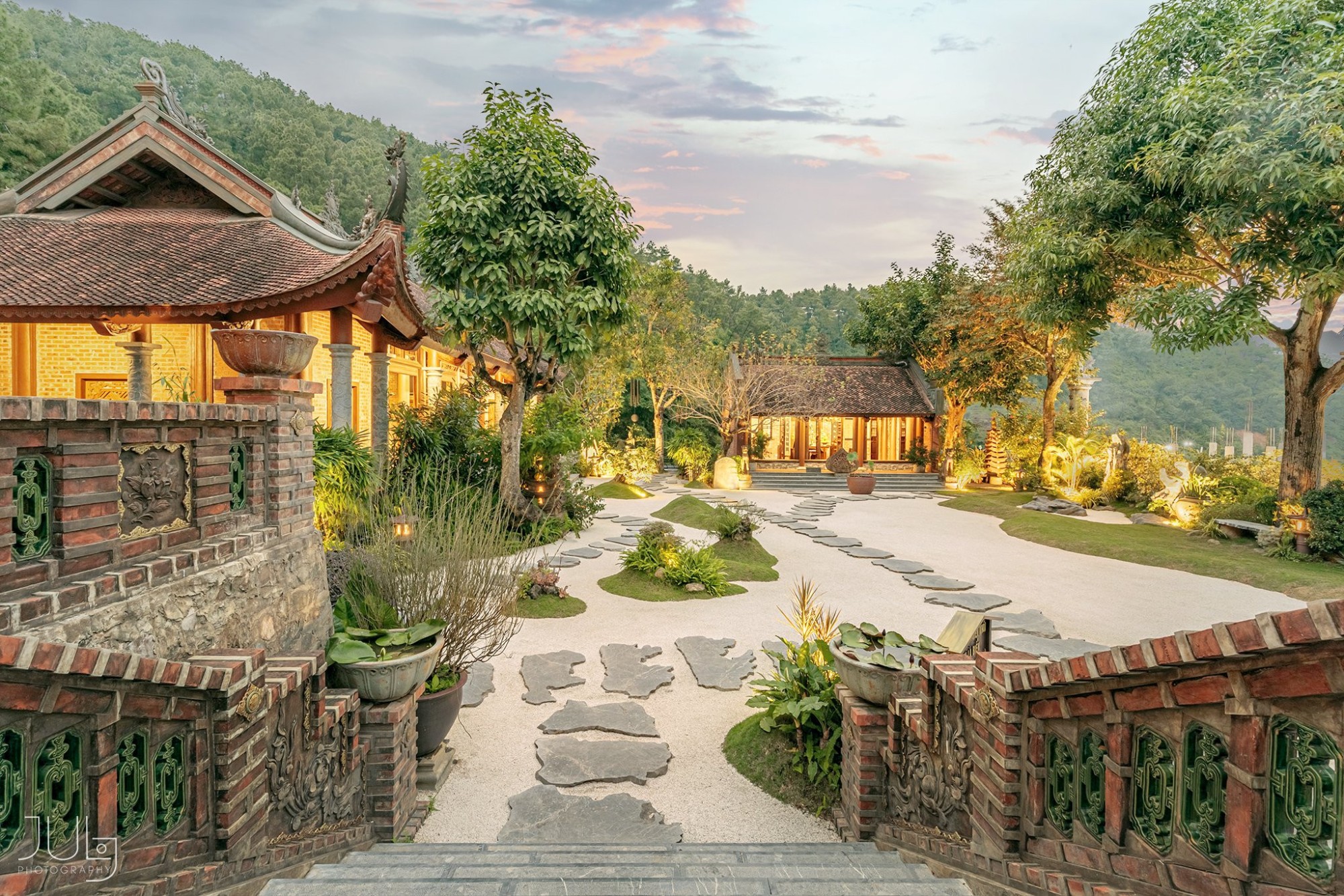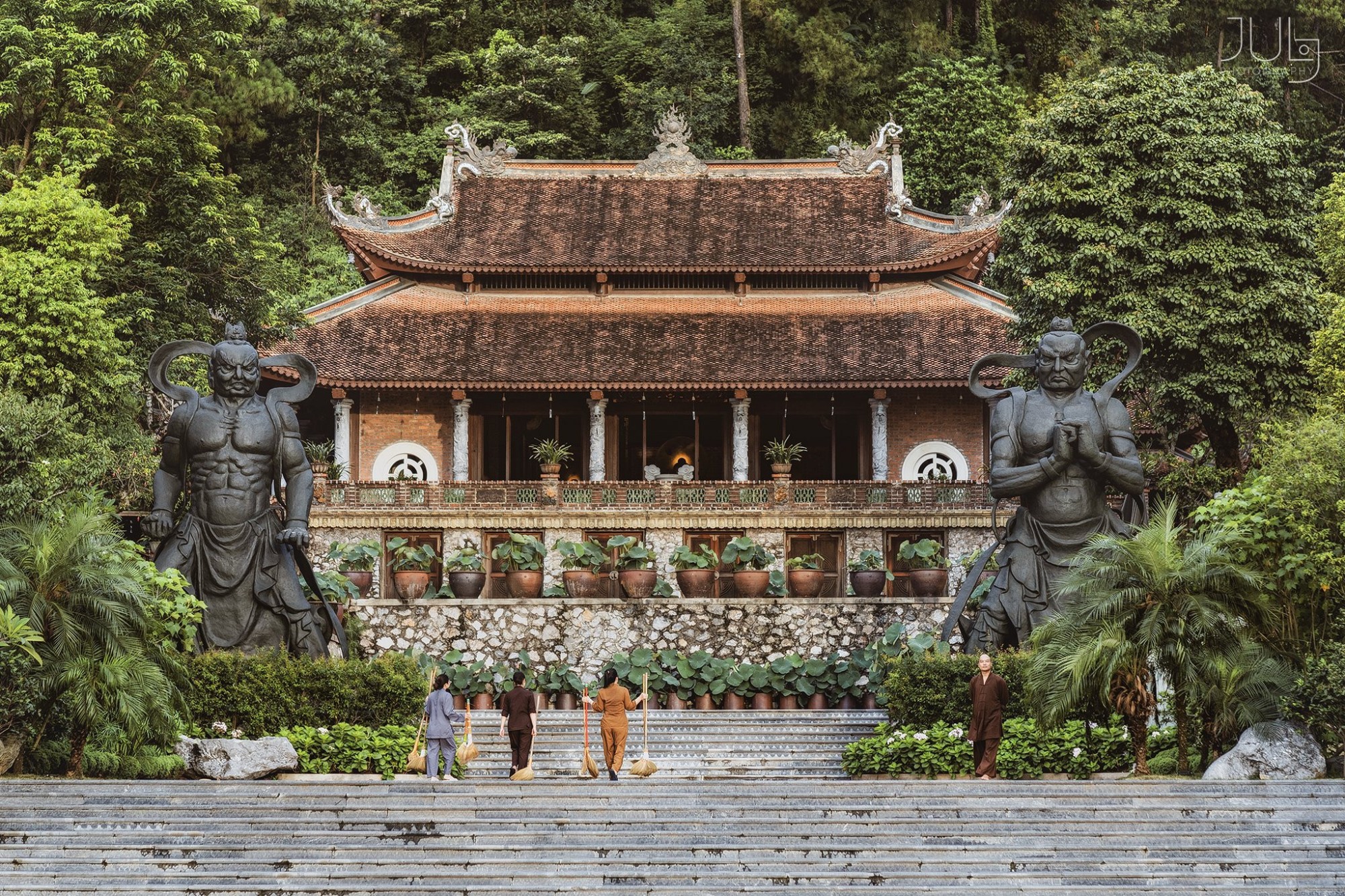Ảnh: July PhotographyChùa Địa Tạng Phi Lai nằm trên một ngọn đồi thấp với không gian rộng và bằng phẳng. Cả quần thể ngôi chùa nằm gọn giữa rừng thông, tạo nên bầu không khí lúc nào cũng mát lành, yên tĩnh. Địa Tạng Phi Lai Tự có thế tựa lưng vào núi với hai bên tả hữu thanh long - bạch hổ và lưu giữ nhiều cổ vật thiêng liêng mang tính lịch sử.