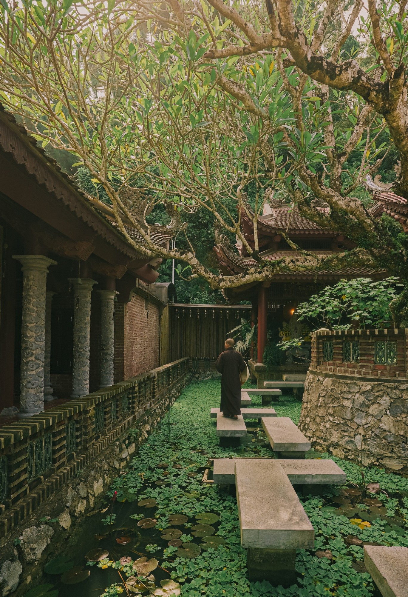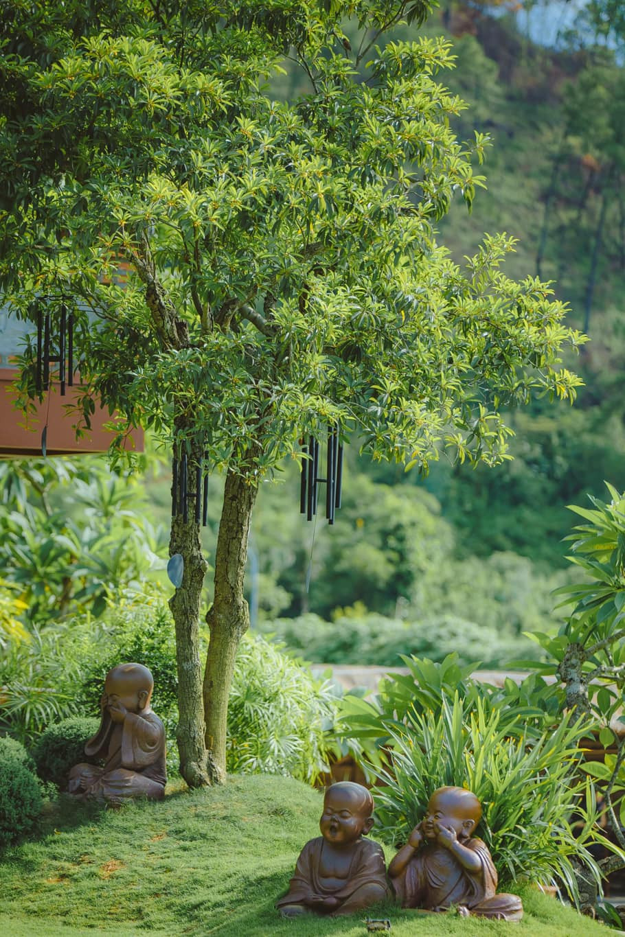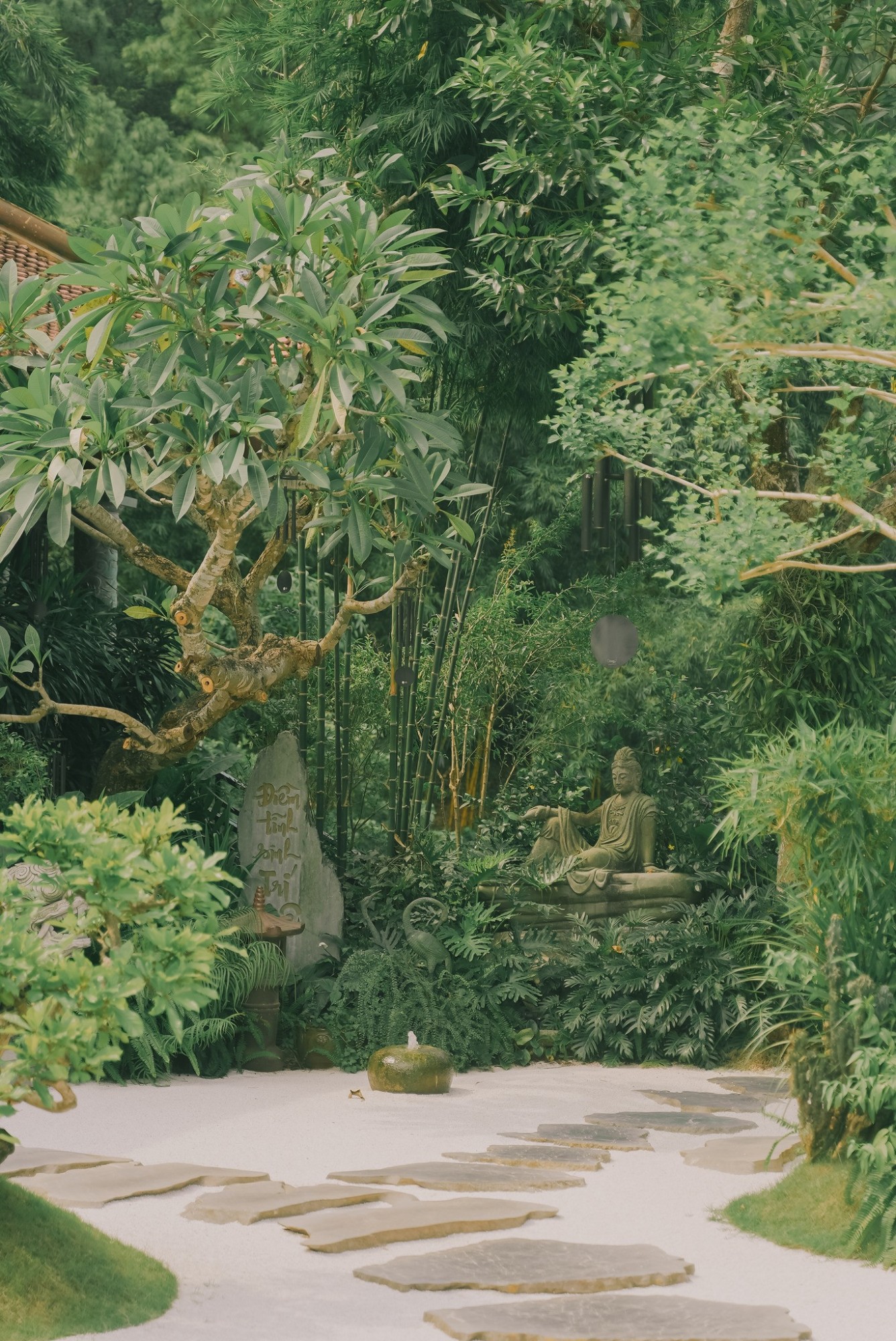Không gian chùa hoàn toàn thanh tịnh, hầu như không có âm thanh gì ngoài tiếng lá cây xào xạc, tiếng chuông gió leng keng trong veo. Bước chân vào chùa, tâm hồn như được tách biệt ra khỏi những suy nghĩ bộn bề thường nhật, bỗng nhiên nhẹ bẫng, trong trẻo và bình an.