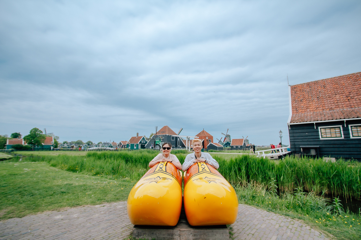 Hoàng Đức, du học sinh Việt tại Đức, cùng bạn gái Minh Hiếu đi du lịch Amsterdam 4 ngày 5 đêm. Họ tranh thủ tham quan làng Zaanse Schans trong một buổi sáng.