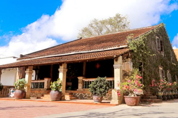 Căn nhà rộng khoảng 240 m2 đúng theo kiểu nhà chữ Đinh xưa. Ở giữa phòng khách là bàn thờ quan Đốc phủ sứ. Nền nhà được lát bằng gạch tàu hình lục giác, mái lợp ngói âm dương.