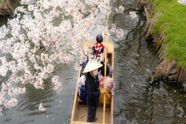 Cuối tháng 3, sự kiện ngắm hoa bằng thuyền "Koedo Kawagoe Haru-no-shuyu" được tổ chức trên sông. Ảnh: @sitwsit/Instagram