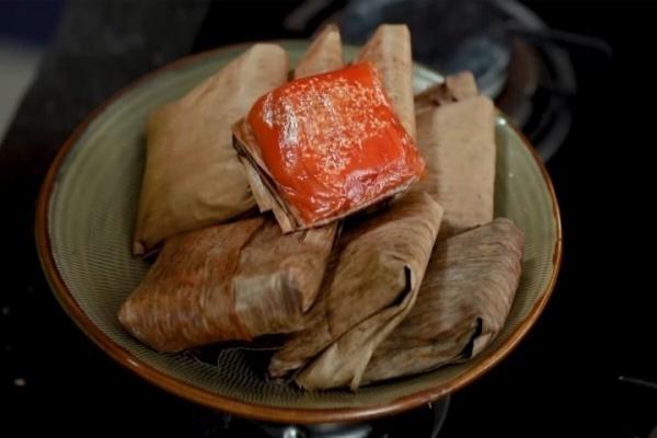 Xé lớp lá chuối khô bao bọc bên ngoài, bất cứ ai cũng bị ấn tượng ngay với hương thơm dịu nhẹ của bột nếp được hòa trộn với gấc. Bánh dẻo, dính nhưng mềm và không nhão, khi nhai lại không bị giắt răng nên trẻ em hay người già đều thích. Ăn đến phần nhân bánh, thực khách còn ấn tượng hơn với vị béo, bùi, ngọt của hạt sen, mứt bí, đỗ xanh, dừa nạo, thoang thoảng hương thơm của dầu chuối.