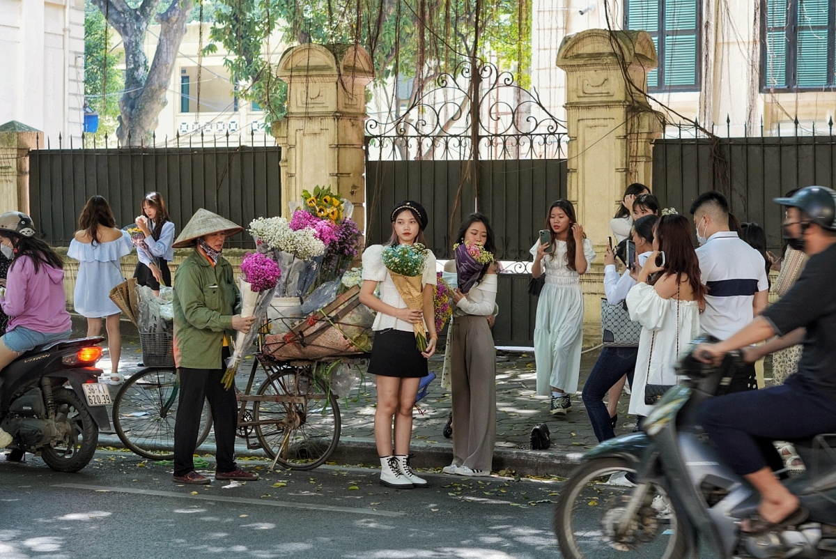 Đường Phan Đình Phùng, khu phố cổ... đông đúc cả ngày khi người Hà Nội đủ mọi lứa tuổi tụ tập ăn sáng, uống cà phê và chụp ảnh trong ngày thu đẹp trời.