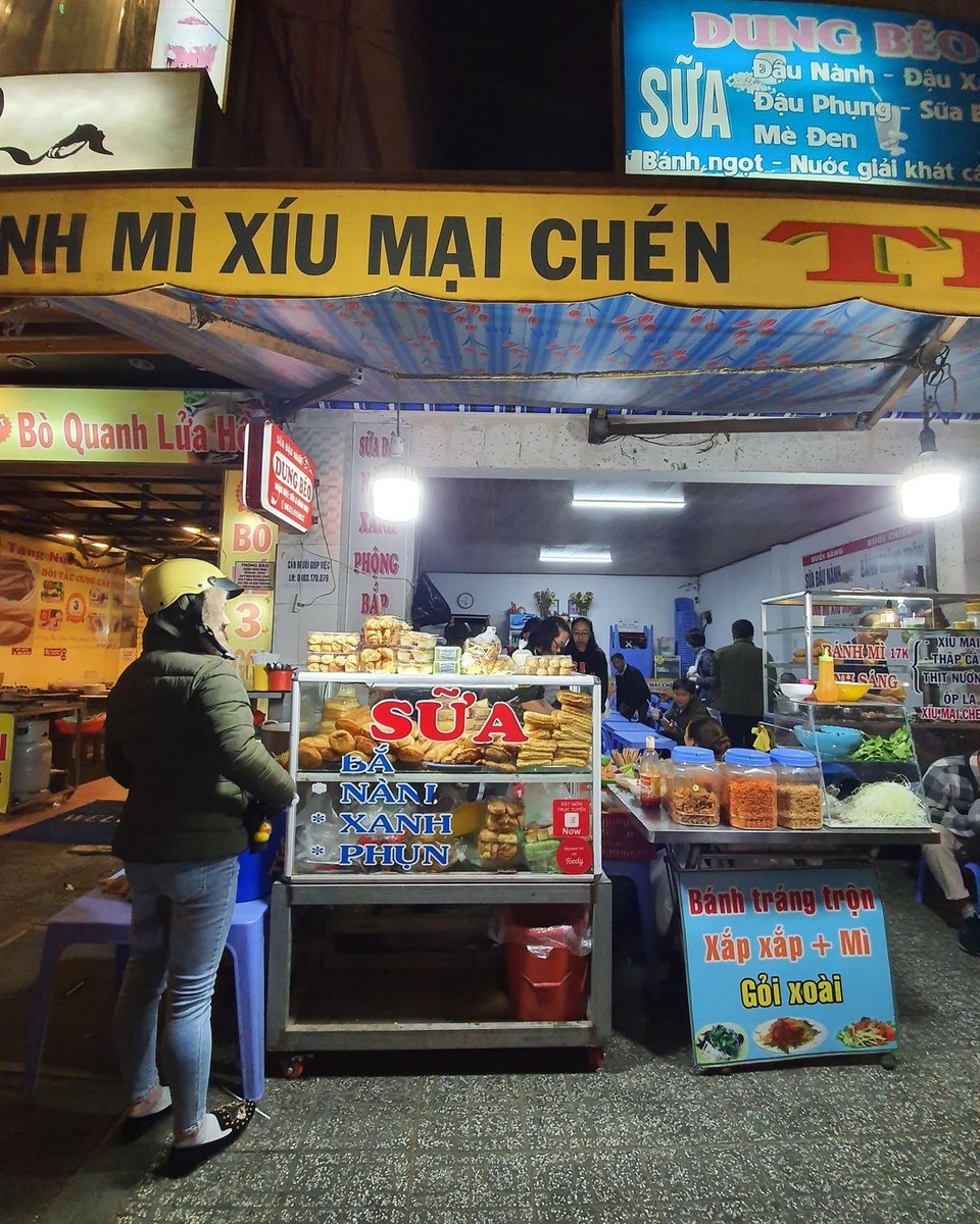 Nếu không muốn di chuyển xa trung tâm, bạn có thể tìm đến quán sữa đậu nành Dung Béo nằm trên đường Nguyễn Văn Cừ. Không gian quán tạo cảm giác gần gũi. Diện tích quán không quá rộng, chỉ có vài bộ bàn ghế nhựa bên trong và trước hiên nhà để ngắm phố phường về đêm.