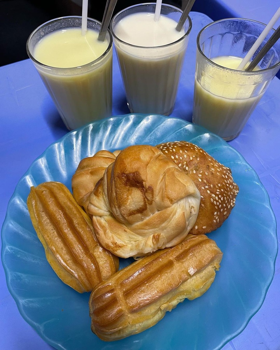 Mức giá sữa đậu nành và các loại bánh ngọt khá rẻ so với chất lượng. Ảnh: @mhunoiii, @foodexbyht. Thực đơn có vài loại sữa như sữa đậu phộng, sữa đậu xanh, sữa mè đen... Nổi bật nhất vẫn là sữa đậu nành. Một ly sữa to đầy, thơm mùi đậu nành, đậm vị béo do có thêm sữa bò và sữa đặc.