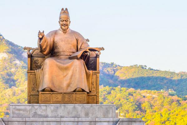 Tại quảng trường Gwanghwamun có bức tượng của hai nhân vật ảnh hưởng lớn đến lịch sử Hàn Quốc. Người đầu tiên là Yi Sun Shin (Lý Thuấn Thần), vị đô đốc hải quân đã lãnh đạo quân đội Joseon kháng Nhật cứu nước. Danh nhân còn lại chính là vua Sejong (Triều Tiên Thế Tông), người đã cùng các nhân sĩ trong Jiphyeonjeon (Tập Hiền điện) sáng tạo nên Hangeul và truyền bá loại chữ viết này trong dân chúng dưới dạng tài liệu Huấn dân chính âm vào năm 1446.