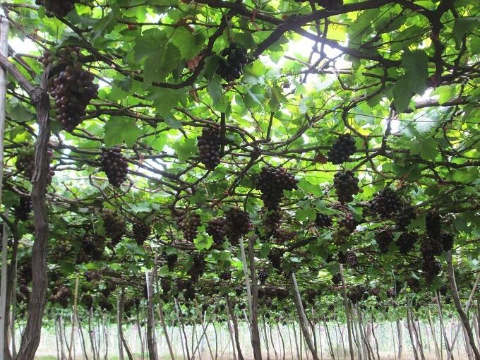 Vùng đất nắng gió này một năm có ba vụ nho, nhưng ngon và ngọt nhất phải kể đến vụ tháng 8, 9. Từ thành phố Phan Rang xuôi về Vĩnh Hy, hai bên đường là những cánh đồng nho bạt ngàn. Thời tiết khô và nắng mùa hè như kết tinh lại trong vị ngọt của những chùm nho tháng 9. Nho ở đây có 2 loại là đỏ và xanh, ngoài thưởng thức, du khách có thể tham gia thu hoạch cùng người dân. Ảnh: Xuân Lộc.