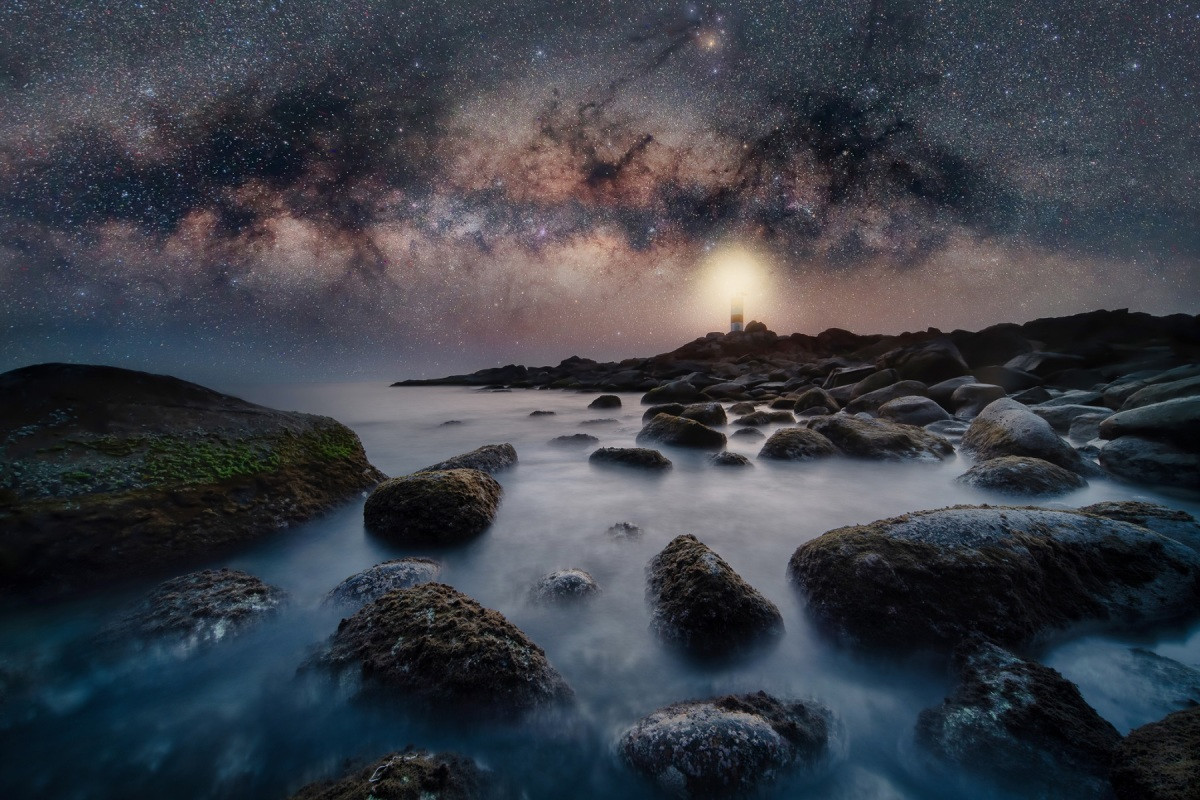 Ngọn hải đăng Kê Gà trên hòn Bà - hòn đảo đẹp nhất Bình Thuận. Kê Gà không chỉ là “điểm ngắm bình minh đẹp nhất Việt Nam” mà còn là nơi lý tưởng để chụp ảnh dải Ngân Hà, nhất là trong những ngày vắng tàu bè đi biển, bầu trời không bị nhiễu ánh sáng - Ảnh: Chu Thiện SơnDải Ngân Hà, Sông Ngân hay còn gọi là Milky Way, là một dải sáng có màu trắng sữa vắt ngang bầu trời đêm. Kéo dài từ chòm sao Tiên Hậu (Cassiopeia) ở phía bắc đến chòm sao Nam Thập Tự (Crux) ở phía nam, và sáng nhất ở chòm sao Nhân Mã (Sagittarius) - trung tâm của dải Ngân Hà.