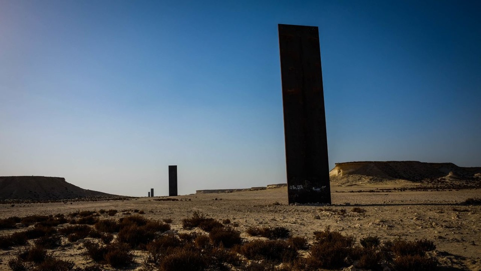Những tấm kim loại kỳ lạ trên sa mạc. Ảnh: Barry Neild/CNN. Các tấm thép trải dài một km trên sa mạc tại bán đảo Zekreet của Qatar là tác phẩm của Richard Serra, một nghệ sĩ người Mỹ nổi tiếng với việc tạo ra các tác phẩm điêu khắc bằng kim loại hùng vĩ.