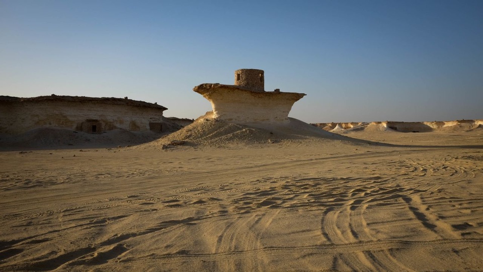 Ngoài sa mạc cát nóng bỏng ở phía tây Qatar, một thứ gì đó khổng lồ và kỳ lạ hiện ra phía chân trời.