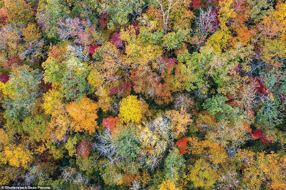 Rừng quốc gia Pisgah (Bắc Carolina, Mỹ) là một trong những rừng quốc gia đầu tiên ở miền Đông xứ cờ hoa. Khu rừng với đủ loại cây đa sắc màu tạo nên khung cảnh mê hoặc khi nhìn từ trên cao.