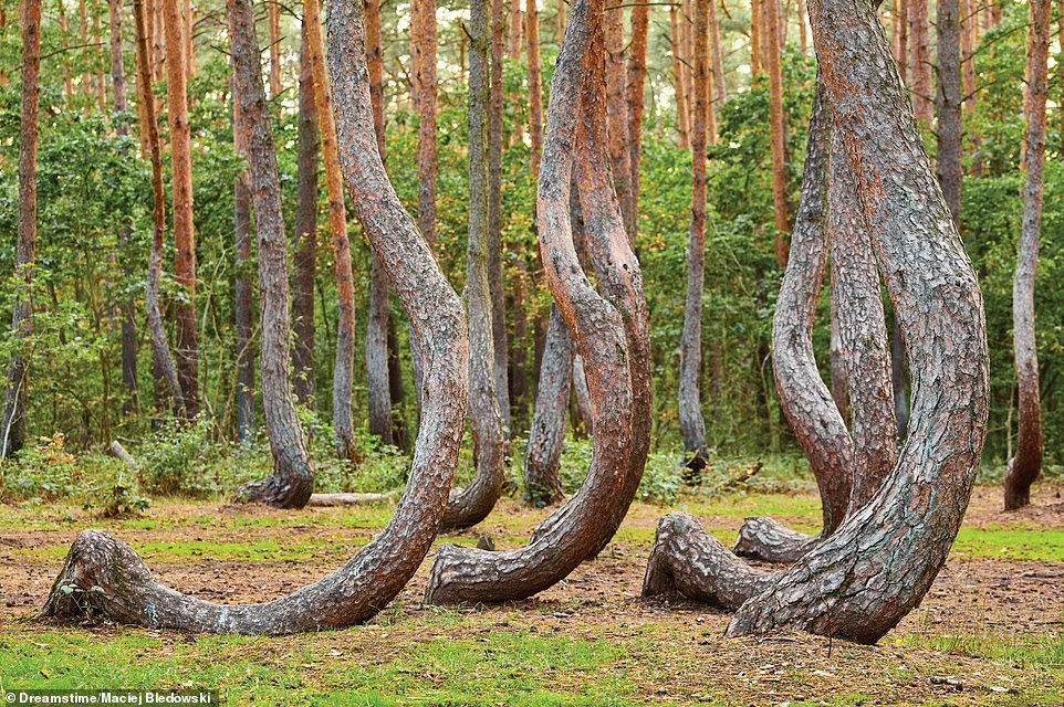 Rừng Crooked ở Ba Lan có khoảng 400 cây thông bị uốn cong một cách kỳ lạ. Khu rừng này được trồng vào những năm 1930. Khả năng cao, những cây thông này đã bị tác động bởi bàn tay con người để tạo ra hình dạng như vậy.