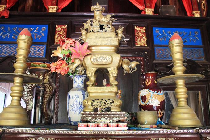 Nơi đây thu hút du khách không chỉ bởi kiến trúc bên ngoài mà còn ở cách bài trí nội thất bên trong. Toàn bộ công trình được chia làm ba gian với lối thông ra vườn ở gian giữa. Các vật dụng khác như bàn ghế, phản, tủ thờ cũng được làm từ các loại gỗ quý… và được lưu giữ gần như nguyên vẹn cho tới ngày nay. Ảnh: Vinh Phong.