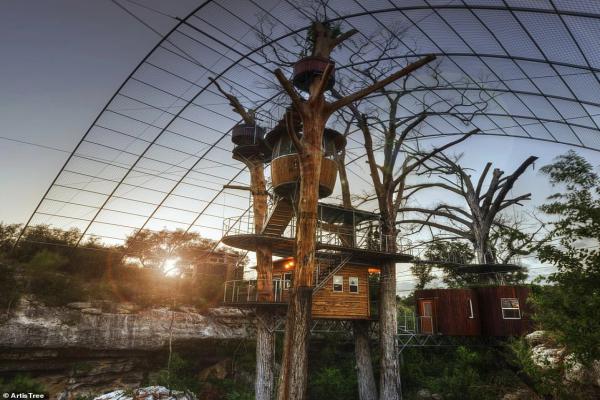 Ngôi nhà trên cây khá đồ sộ này nằm ở Austin, Texas, Mỹ. Công trình được gọi là The Nest, có diện tích 56 m2. Cấu trúc của căn nhà được thiết kế mô phỏng sinh học theo kết cấu từ tự nhiên. Trong đó, các kiến trúc sư lắp đặt một lưới kim loại bao phủ với hy vọng sẽ tạo ra tán cây xanh sống mãi với thời gian.