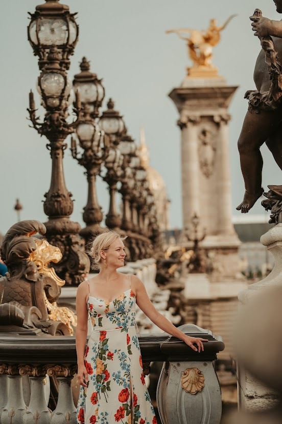 "Nhiều khi tôi trả lời là ra bờ sông hoặc ra mấy cây cầu, mọi người nghĩ tôi đùa. Nhưng thực sự chụp ảnh trên cầu Pont Alexandre III rất đẹp. Đây là một địa điểm nổi tiếng tại Paris, bắc qua sông Seine và được ca ngợi là một trong những cầu đẹp nhất thành phố", nhiếp ảnh gia người Việt chia sẻ.