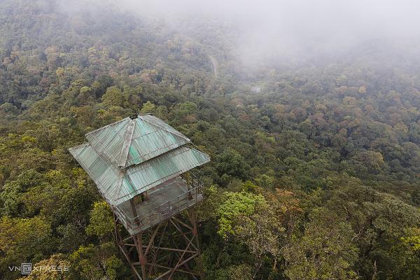 Cánh rừng nguyên sinh nhìn từ chòi canh lửa trên đỉnh U BòTrước khi tiếp cận đỉnh, du khách dừng chân nghỉ tại Trạm kiểm lâm U Bò. Trạm nằm ở vùng sâu vùng xa, khu dân cư gần nhất cách đến 40 km. Khu vực này không có điện lưới, nhưng vẫn có sóng điện thoại. Trạm quản lý gần 5.000 ha rừng nguyên sinh.