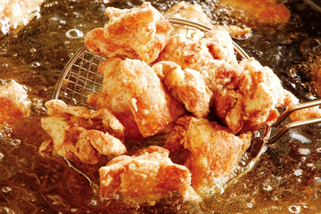 Karaage được tạo nên từ việc học tập các phương pháp nấu thịt của phương Tây. Karaage là một trong những món ăn nhẹ phổ biến nhất ở Nhật Bản. Đây thực tế là tên gọi chung của một kỹ thuật nấu ăn kiểu Nhật, với thành phần chính gồm cá hoặc gà. Tuy nhiên, karaage ngày nay chủ yếu được làm từ thịt gà. Chúng được ướp rồi phủ bột, chiên trong dầu ít béo.