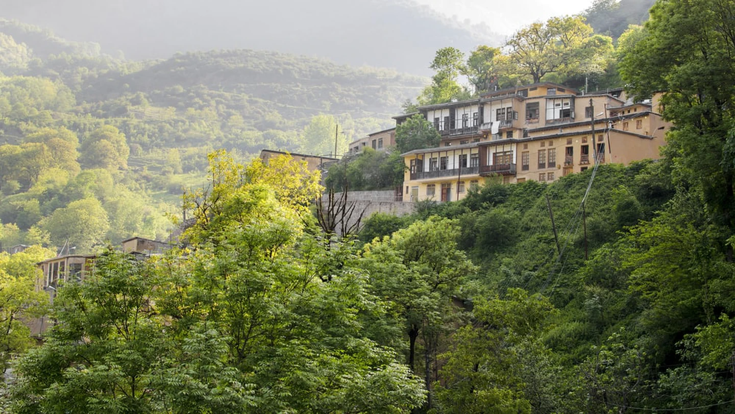 Do vị trí địa lý, khí hậu của làng Masouleh khác với phần lớn các vùng dân cư ở Iran. Không khí ấm áp, ẩm ướt từ Caspian thổi về bị dãy núi Alborz chặn lại, tạo mưa và sương mù dày. Sương mù cũng được xem là một trong những "đặc sản" của ngôi làng. Ảnh: WelcometoIran.