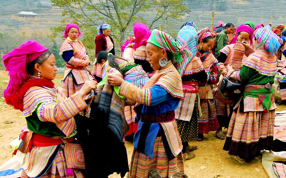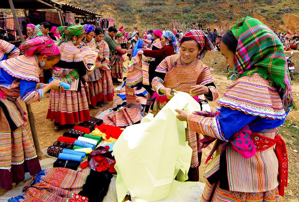 Giữa mùa Xuân, đến với phiên chợ vùng cao Tây Bắc du khách sẽ được chiêm ngưỡng vẻ đẹp của những cô gái Lô Lô, Hà Nhì, Mông... xúng xính trong bộ váy áo mới , màu sắc rực rỡ, gương mặt tươi vui, xinh xắn, trắng trẻo xuống chợ.