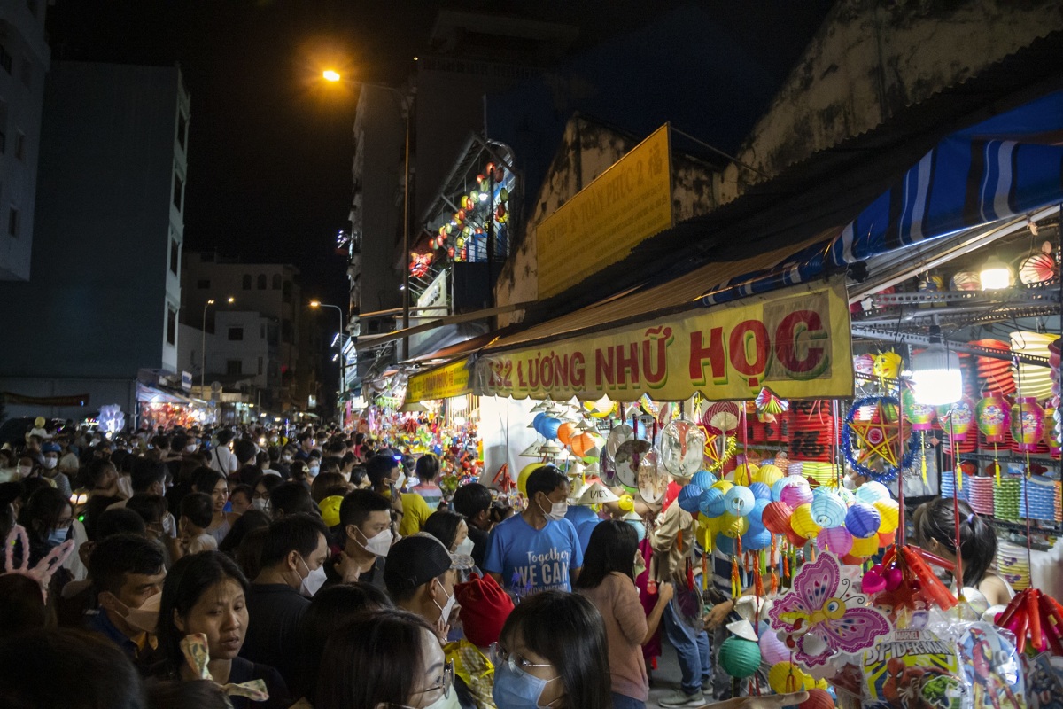 Trong những ngày lễ Quốc khánh, người Sài Gòn dẫn theo trẻ em tập trung về phố lồng đèn Lương Nhữ Học, quận 5, để vui chơi, mua sắm chuẩn bị đón Tết Trung thu.