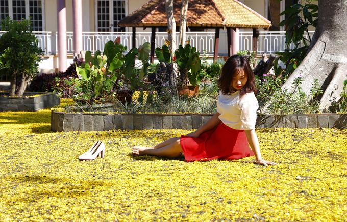 Dưới gốc là những thảm hoa vàng khiến bất cứ ai đi qua cũng bị níu chân.
