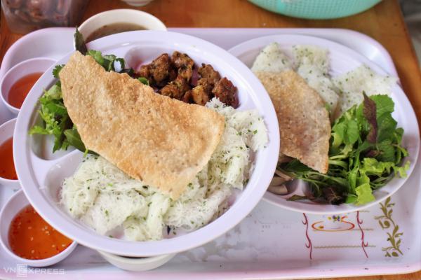 Quán bánh hỏi cháo lòng, thịt nướng ở quận Bình Thạnh sử dụng nguyên liệu từ Bình Định, giá 35.000 đồng/phần.
