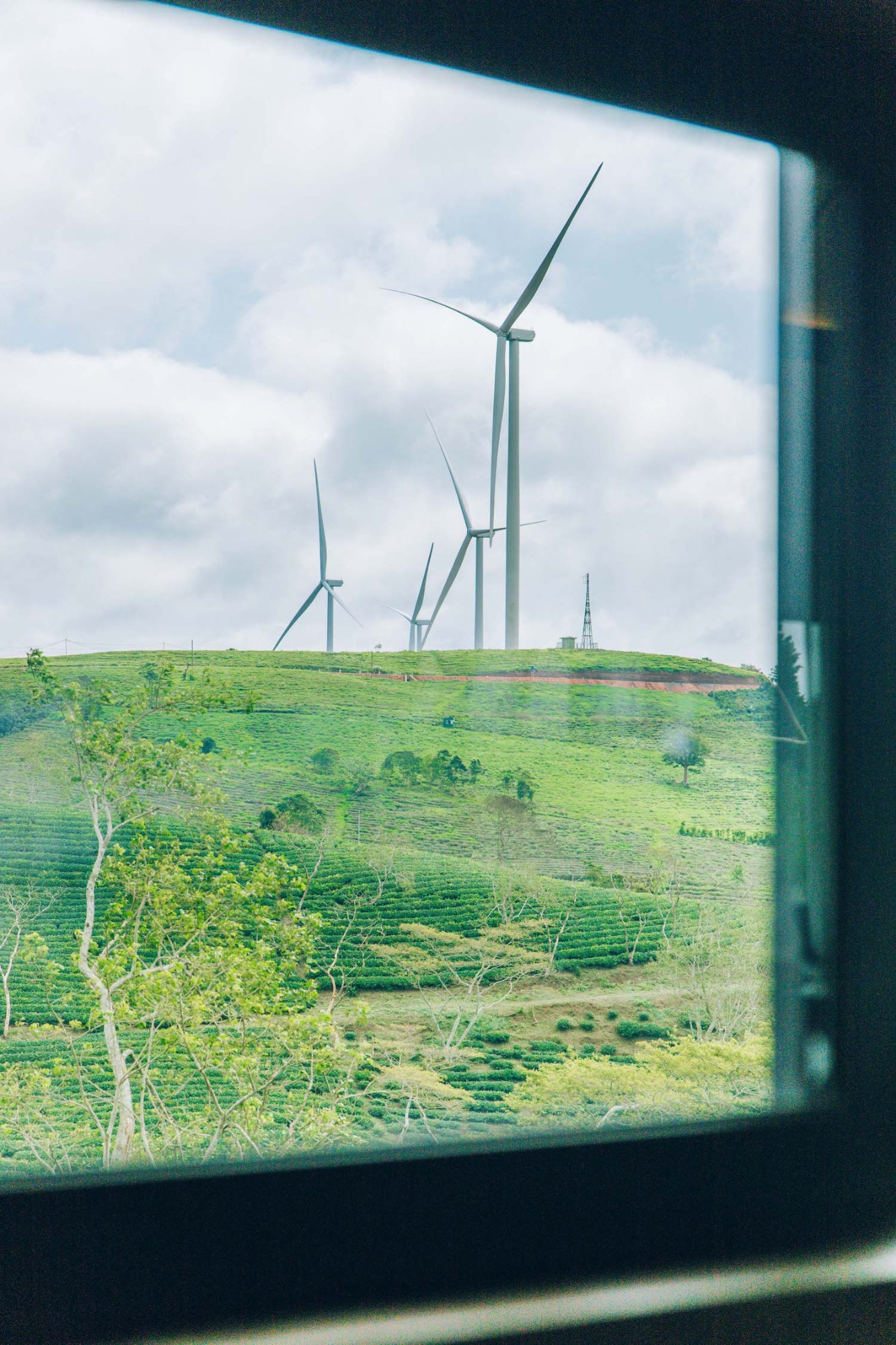 Đoàn tàu nổi bật trên nền thiên nhiên xanh mát của đồi chè Cầu Đất. Ảnh: Trình Nguyễn Cặp đôi Hội Nguyên và Hân, ở TP HCM có chuyến đi kỷ niệm ở TP Đà Lạt vào cuối tháng 5. Nguyên chia sẻ vì ấn tượng với không khí, khung cảnh lãng mạn của thành phố nên họ ở đây trong ba ngày. Trong đó, họ có một ngày chụp ảnh ở đồi chè Cầu Đất, nơi có đoàn tàu đang được nhiều người check-in.