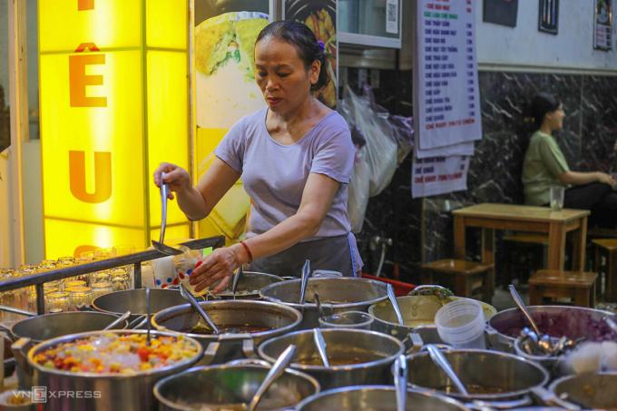 Trung bình mỗi ngày quán bán hơn 1.000 ly chè các loại, chưa tính đến các đơn đặt hàng của khách các tỉnh. Giá mỗi ly chè dao động 13.000 đến 17.000 đồng, chè khay các loại 12 chén có giá 70.000 đồng.
