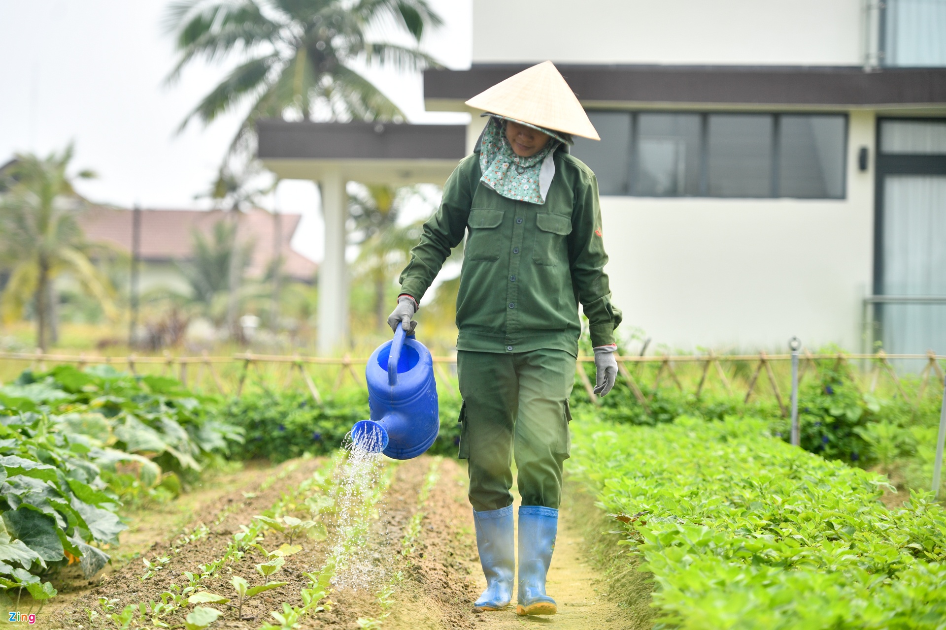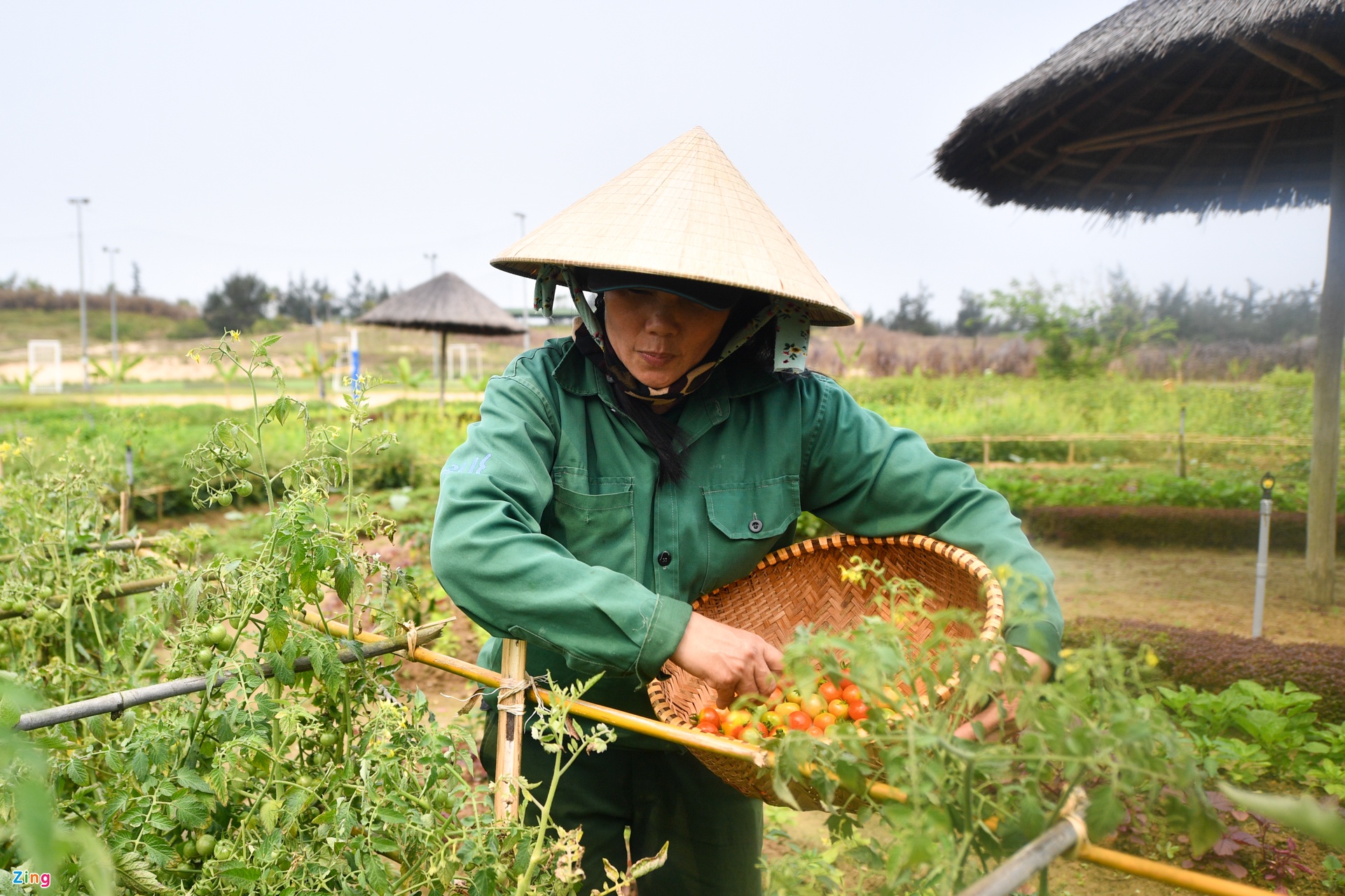 Anh Trần Văn Thời, trưởng vườn rau, cho biết định hướng của resort là phát triển bền vững nên canh tác vườn rau hoàn toàn theo phương pháp hữu cơ. "Rau củ được trồng hữu cơ cũng sẽ có vị rất khác so với trồng thông thường", anh Thời nói.