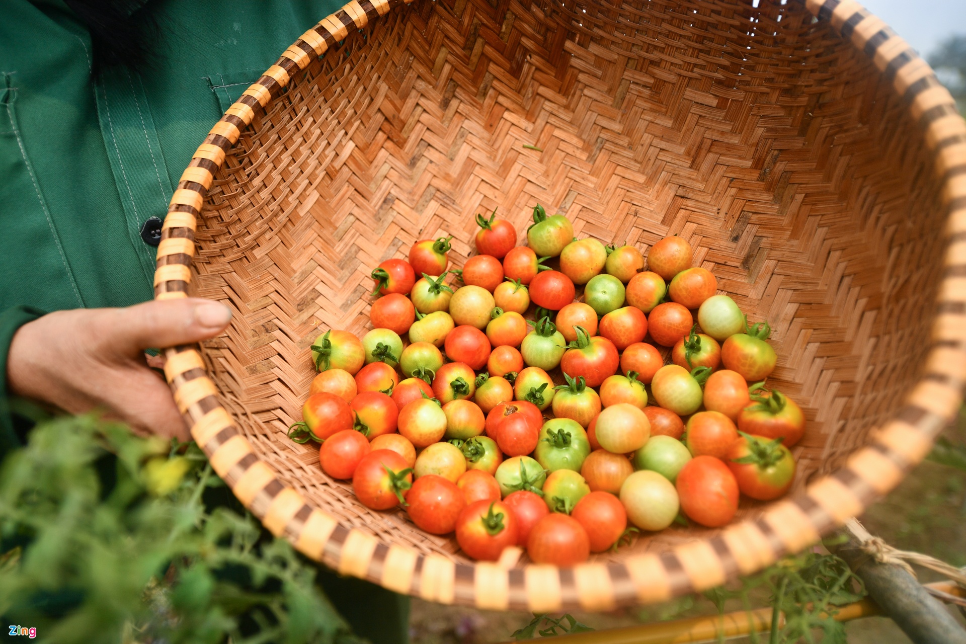 Cà chua bi chín được nông dân thu hoạch tại vườn rau. Những trái cà chua này sẽ làm nguyên liệu trong các món salad trong thực đơn của nhà hàng trong khu resort.