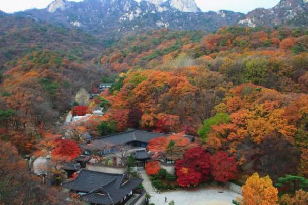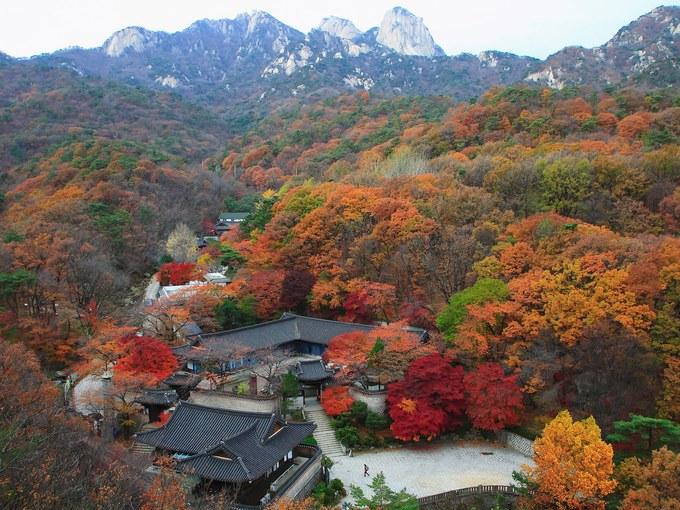 Vườn quốc gia Bukhansan của Seoul là địa điểm nghỉ dưỡng ngay phía Bắc thành phố. Vẻ đẹp của thiên nhiên hài hòa với các công trình nhân tạo tại đây. Những con đường mòn đi bộ qua suối, những ngôi đền thờ ẩn mình trong những tán cây. Đỉnh Bukhansan mang đến cho du khách tầm nhìn toàn cảnh thành phố và ngọn núi đang rực rỡ sắc thu ở bên dưới. Ảnh: PlusArquitectura.