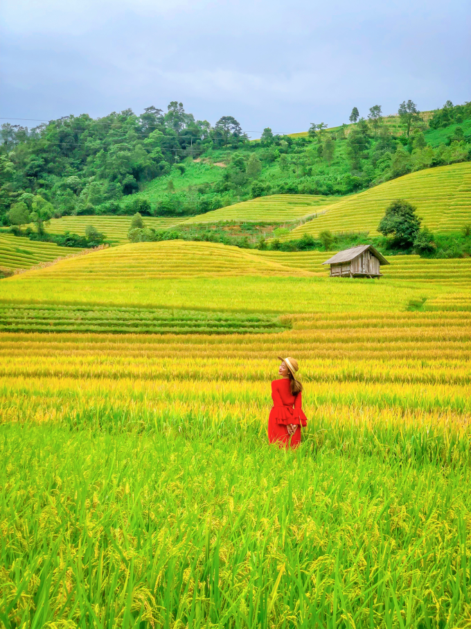 Đang du lịch Cà Mau, Thùy Dương bay ngay về Hà Nội để tới Sa Pa vì nghe tin lúa đã chín vàng.