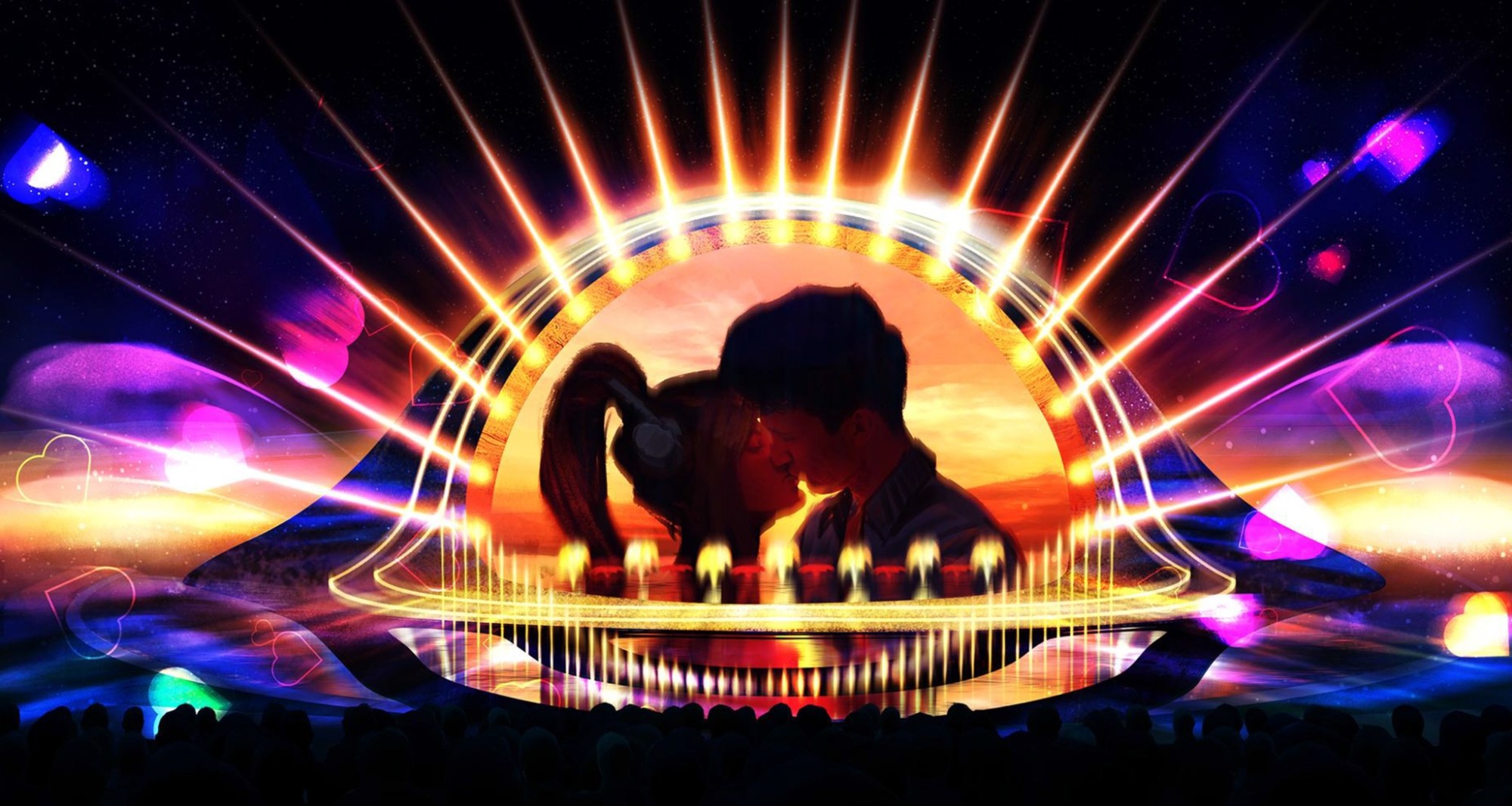 Kiss The Stars - Nụ hôn của những vì sao sẽ đưa 5.000 khán giả đi xuyên qua dải ngân hà để theo chân cuộc phiêu lưu của chàng thanh niên trẻ Luigi, người sẽ cùng những người bạn chiến đấu chống lại mối đe dọa từ vũ trụ do ECA2 tư vấn thiết kế và sản xuất. Trong câu chuyện này, khán giả sẽ tìm thấy biểu tượng của tình yêu đích thực qua sự khám phá lỗ đen, sự kết nối giữa Không gian và Trái đất.